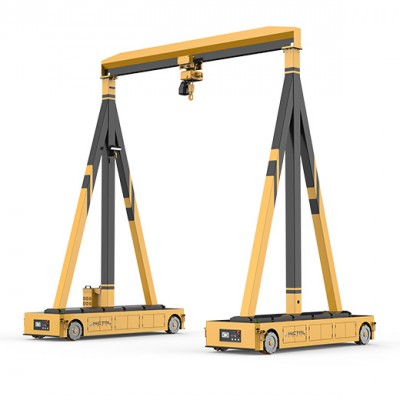OMV智能龍門吊由兩臺獨立的全向平臺轉運車上安裝龍門吊組成,兩臺平臺轉運車具有雙車聯動功能,共同托舉龍門吊吊裝物料進行前進、后退、橫移、斜行、旋轉等全方位任意方向移動。