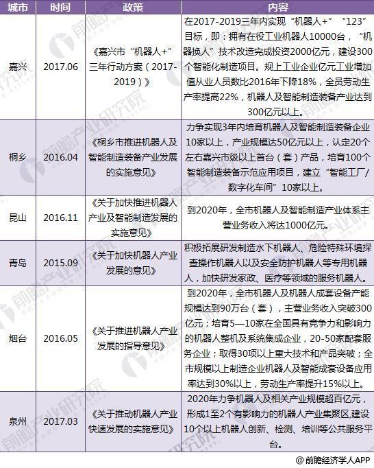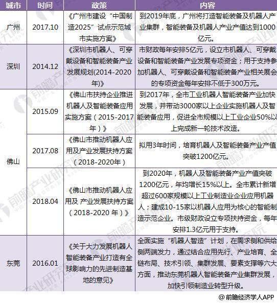 截至2018年,有14個地級市出臺機器人產(chǎn)業(yè)發(fā)展和加大科研投入建立智能型機器人研發(fā)機構(gòu)的相關(guān)政策和獎勵機制,包括廣州、佛山、東莞、嘉興、泉州、長沙等。