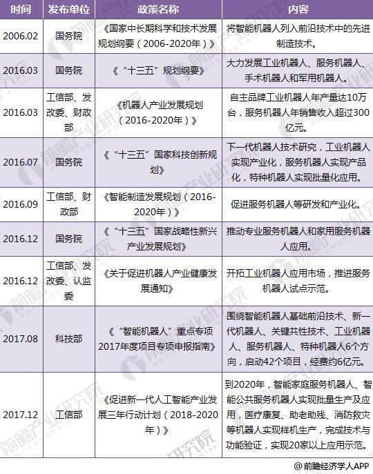圖表1:截至2018年國家層面機器人相關(guān)政策匯總
