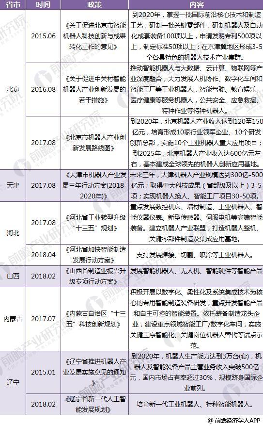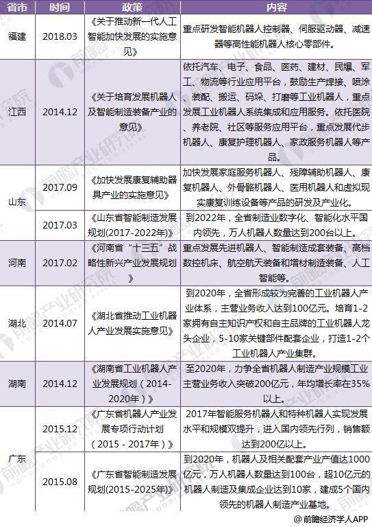 截至2018年31省市機器人政策匯總及解讀