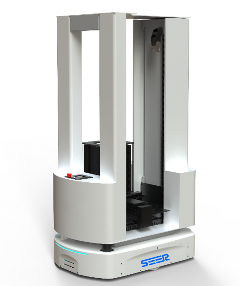 倉儲管理、物料運輸、設備對接。車體采用上海仙工智能科技激光 SLAM 導航車,內(nèi)置仙工智能自主研發(fā)控制器進行運輸任務。