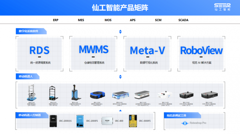 為了解決客戶最核心的痛點,仙工智能智能、高效、可靠、易用的端到端工業(yè)物流解決方案,涵蓋軟件產(chǎn)品統(tǒng)一資源調(diào)度系統(tǒng) RDS,倉儲物流管理系統(tǒng) MWMS,數(shù)據(jù)可視化系統(tǒng) meta-V,視覺 AI 解決方案;硬件產(chǎn)品 SRC 移動機器人控制器、以及基于 SRC 的各類移動機器人,如激光 SLAM 自動叉車,激光 SLAM 料箱機器人,頂升機器人、復合機器人等。各類客戶都可以根據(jù)自己的需要從其中獲取理想且滿足定制要求的軟硬件產(chǎn)品及解決方案。