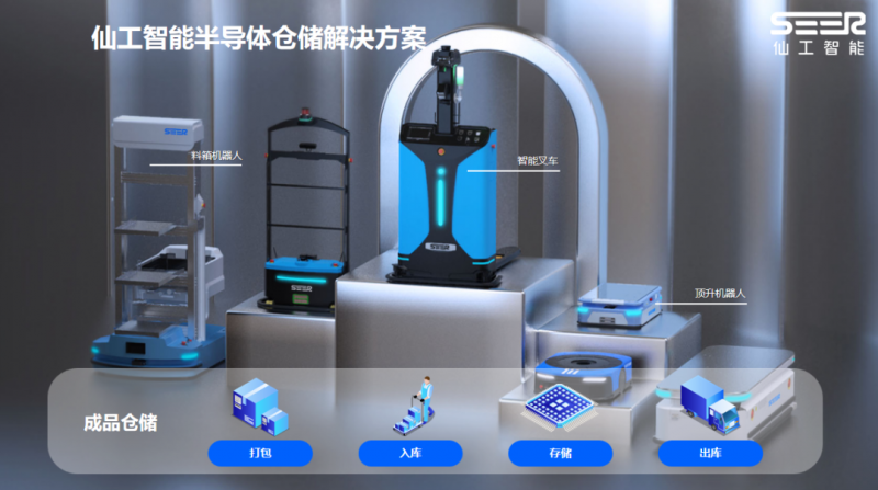 仙工智能針對半導體倉儲的解決方案擁有天然優勢,因為仙工智能產品類型眾多,涵蓋控制器、移動機器人底盤、料箱機器人和智能叉車,能夠實現整個半導體打包入庫存儲以及出庫場景全覆蓋。