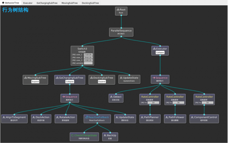 MATRIX平臺80%以上的功能為標(biāo)準(zhǔn)化功能,為各產(chǎn)品系列所共用,任務(wù)調(diào)度邏輯基于行為樹引擎構(gòu)建,可針對客戶需求,靈活調(diào)整行為樹插件與算法參數(shù),快速交付新型號和第三方設(shè)備集成。