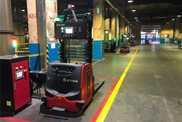 該項目中,通過多臺艾吉威叉車AGV在提升機/轉存區/生產工位連續協同工作,實現廠內物料供應的自動化轉運。