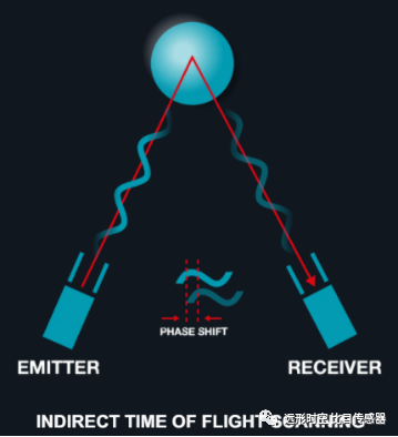 iToF(Indirect Time of Flight)的光發射器發出連續的經過調制的光信號,測距依據的是發出的光和接受到的反射光之間的相位差。