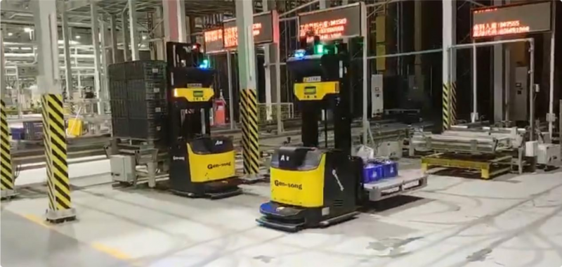 -近百臺(tái)SLAM托盤式AGV集群