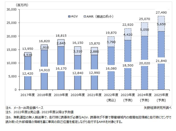 日本AGV/AMR 銷售規(guī)模變化和預(yù)測