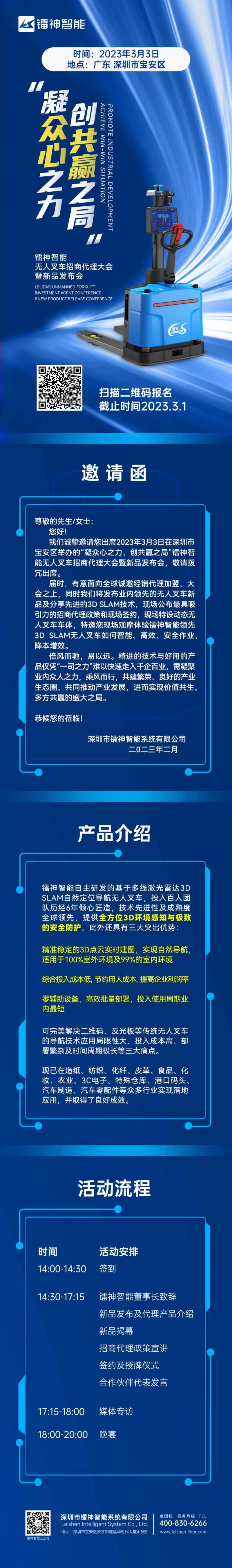 鐳神智能無(wú)人叉車招商代理大會(huì)暨新品發(fā)布會(huì)即將開幕!