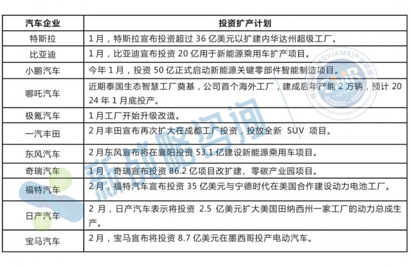 隨著疫情結束,居民出游需求大幅增長,全國范圍內人員流動更加頻繁,汽車作為主流交通工具之一,其需求也隨之增長。第一季度還未結束,不少車企已紛紛官宣投資擴產計劃,其中,新能源汽車占多數。