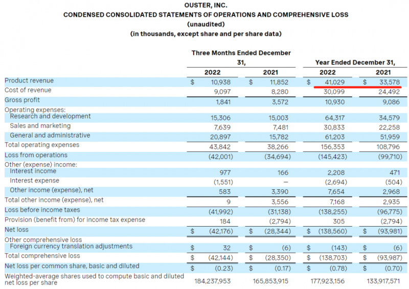 從原始財(cái)務(wù)報(bào)表全年數(shù)據(jù)看,Cepton在2022年全年實(shí)現(xiàn)營收743萬美元。全年凈虧損為0.61億美元。