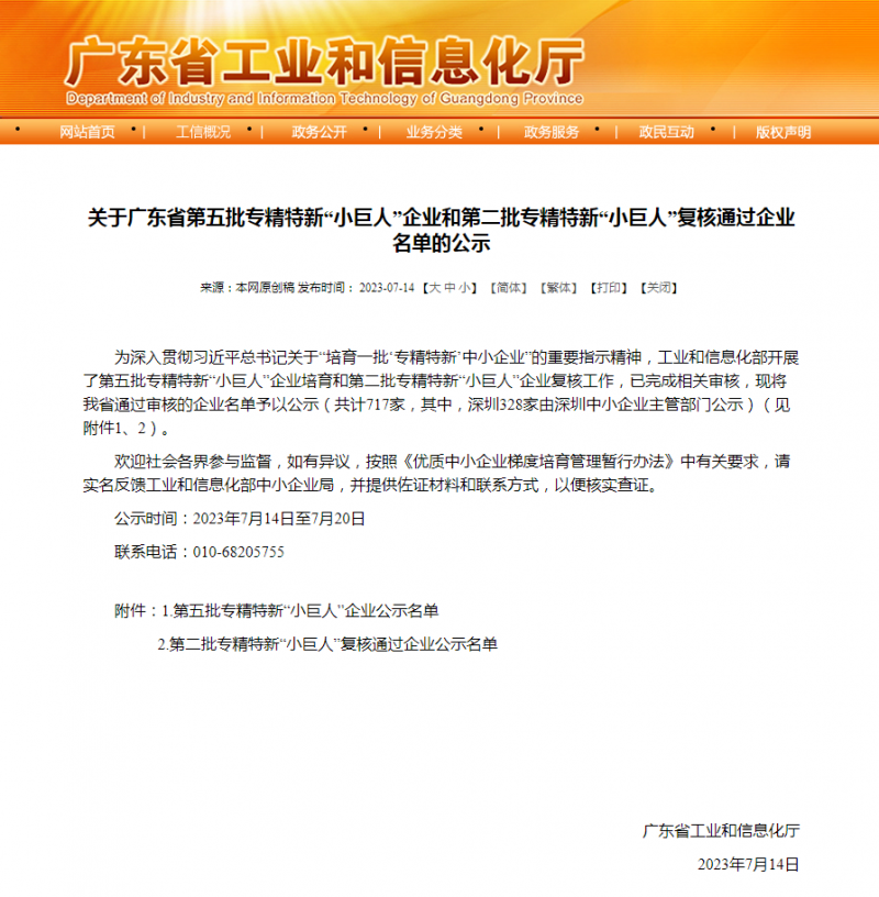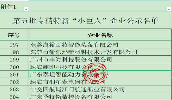 2023年7月14日,廣東省工業(yè)和信息化廳發(fā)布了《關(guān)于廣東省第五批專精特新“小巨人”企業(yè)和第二批專精特新“小巨人”復(fù)核通過(guò)企業(yè)名單的公示》,廣東泰坦智能動(dòng)力有限公司通過(guò)國(guó)家級(jí)專精特新企業(yè)審核,榮獲“小巨人”稱號(hào)。