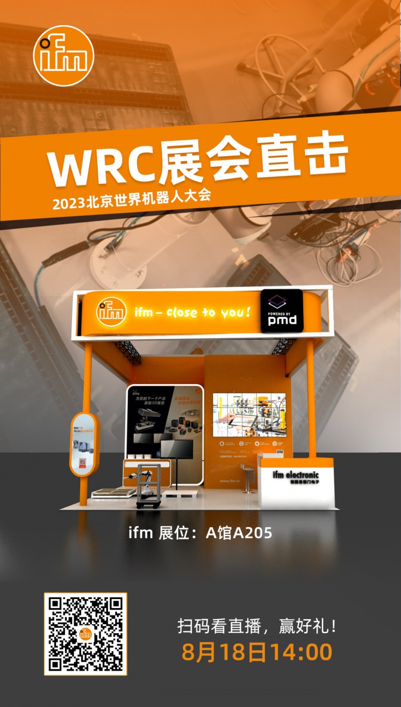 8月16日至22日,易福門ifm將攜其系列3D視覺感知產(chǎn)品亮相“2023世界機器人大會”,展會期間易福門ifm還將推出在線直播,帶領觀眾“云看展”,敬請期待!