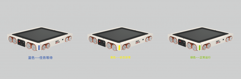 在車體四角設(shè)計(jì)狀態(tài)燈,黃色——異常;藍(lán)色——等待;綠色——正常,用戶第一時(shí)間可以通過警示燈顏色了解車體的狀態(tài),保障立體庫的穩(wěn)定運(yùn)行。