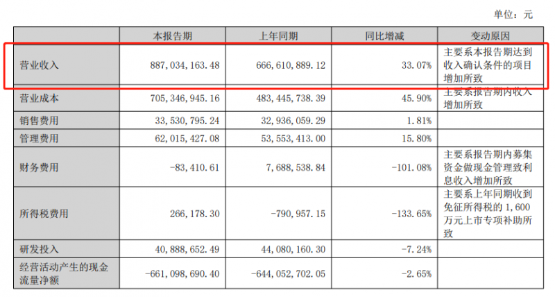 井松智能8月23日晚間發(fā)布半年度業(yè)績(jī)報(bào)告稱,2023年上半年?duì)I業(yè)收入約2.71億元,同比增加52.39%。報(bào)告期內(nèi),營(yíng)業(yè)收入增長(zhǎng)主要系本報(bào)告期達(dá)到收入確認(rèn)條件的項(xiàng)目增加所致。