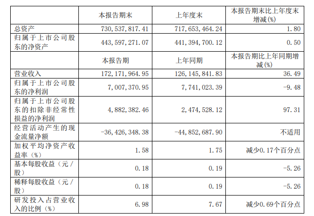 瑞晟智能發(fā)布2023年半年度報(bào)告。半年報(bào)顯示,公司實(shí)現(xiàn)營(yíng)業(yè)收入1.72億元,同比增長(zhǎng)36.49%;歸屬于上市公司股東的扣除非經(jīng)常性損益的凈利潤(rùn)488.24萬(wàn)元,同比增長(zhǎng)97.31%。