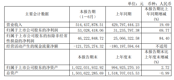 蘭劍智能8月24日晚間發(fā)布半年度業(yè)績(jī)報(bào)告稱,2023年上半年?duì)I業(yè)收入約5.14億元,同比增加19.69%;歸屬于上市公司股東的凈利潤(rùn)約5303萬(wàn)元,同比增加69.77%;基本每股收益0.73元,同比增加69.77%。