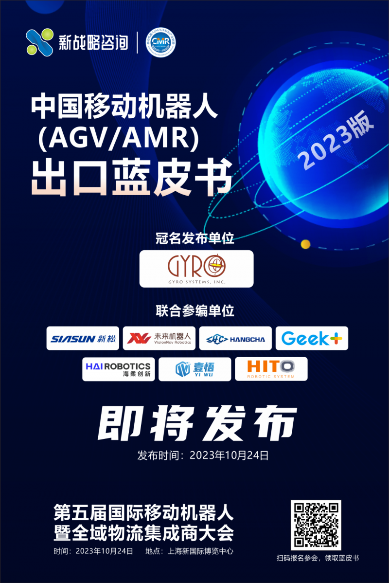 為了更詳細(xì)地解讀當(dāng)前國(guó)產(chǎn)AGV/AMR出?,F(xiàn)狀及趨勢(shì),由CMR產(chǎn)業(yè)聯(lián)盟主編,捷螺智能冠名發(fā)布,新松機(jī)器人、未來機(jī)器人、杭叉智能、極智嘉、海柔創(chuàng)新、壹悟科技、海通機(jī)器人等企業(yè)聯(lián)合編制的《中國(guó)移動(dòng)機(jī)器人(AGV/AMR)出口藍(lán)皮書》將在10月24日舉辦的“i第五屆國(guó)際移動(dòng)機(jī)器人暨全域物流集成商大會(huì)”上重磅發(fā)布,參會(huì)人員可免費(fèi)獲得藍(lán)皮書紙質(zhì)版一份,敬請(qǐng)期待!