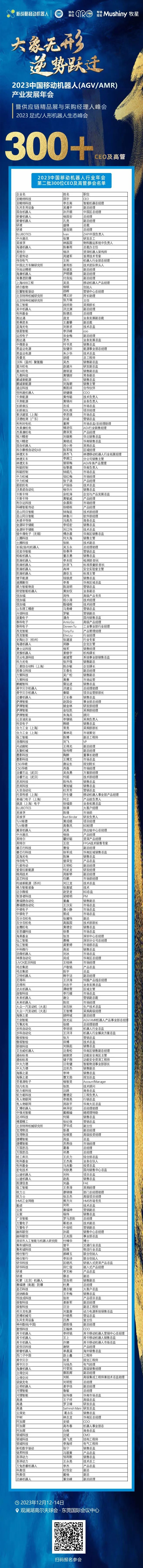 2023中國移動機器人行業年會第二批300+CEO及高管參會名單