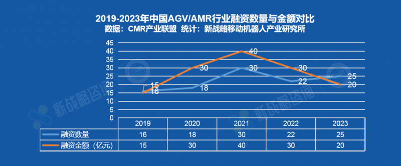 根據CMR產業聯盟數據,新戰略移動機器人產業研究所統計,2023年,中國AGV/AMR領域共發生25起融資事件,融資總額累計超過20億元。相較于2022年行業整體融資大幅減少,資本市場漸趨冷淡。