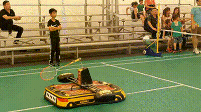 由中國電子科技大學所研發的羽毛球陪練機器人——Robomintoner。不僅能識別方向、預測羽毛球軌跡,還能進行精確有力的揮擊,可以與真人進行對打訓練。