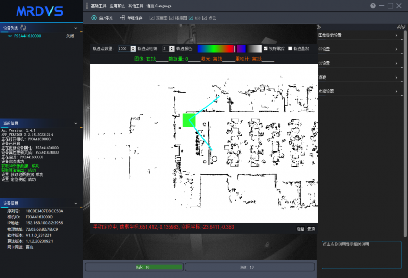 上位機軟件具備建圖功能:地圖管理、離線仿真、日志管理和實時顯示等。無論是地圖切換、下載還是上傳,一鍵即可完成。