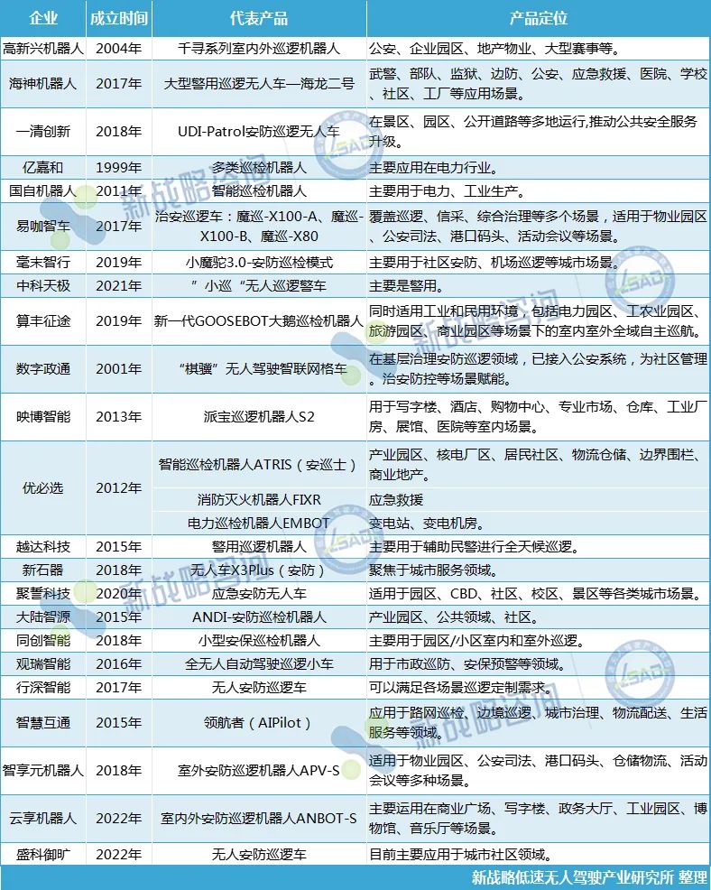 表格1:國內部分安防巡檢機器人企業及產品相關情況