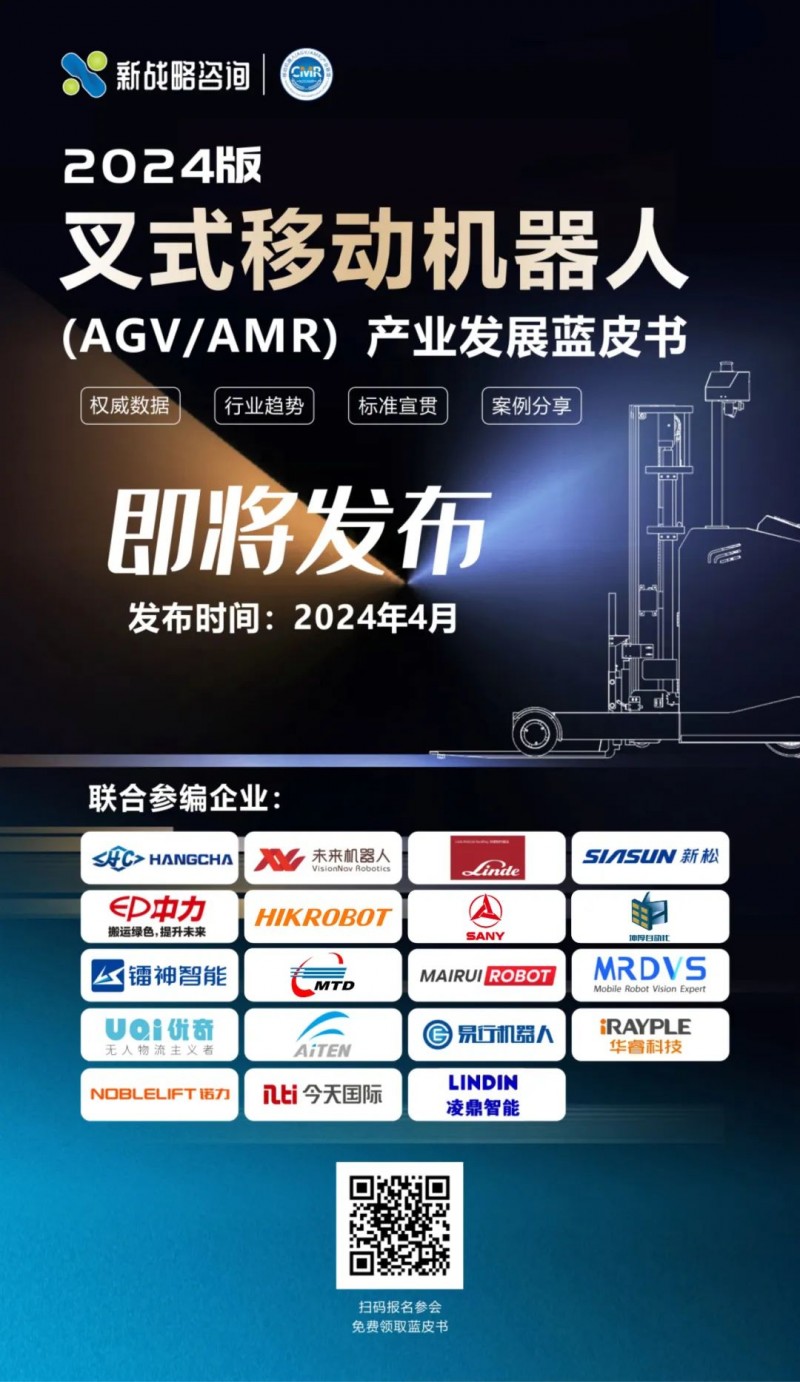 2024年,為了更好地探析當前無人叉車市場最新發展情況及趨勢,推動無人叉車深入應用,由CMR產業聯盟主編,杭叉智能、未來機器人、林德、新松、浙江中力、??禉C器人、三一機器人、坤厚智能、鐳神智能、機科股份、邁睿機器人、邁爾微視、UQI優奇、海豚之星、易行機器人、華睿科技、上海諾力智能、今天國際、凌鼎智能等企業聯合參編的《叉式移動機器人(AGV/AMR)產業發展藍皮書(2024版)》將在4月29日舉辦“第二屆全球無人叉車峰會”上重磅發布,參會人員可免費獲得紙質版藍皮書一份,敬請期待!