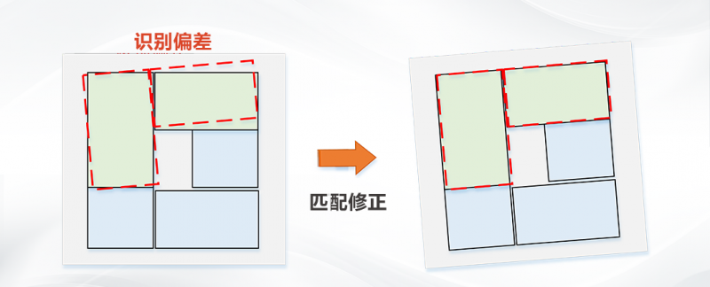 面對產線上出現的異常斷電等情況,系統中支持視覺續碼,快速恢復生產狀態。通過對已碼包裹位姿與預設的垛型的匹配,確認當前狀態并引導準確續碼。同時垛型匹配時會將視覺識別到的偏差進行分析,修正垛型棧板,保障現場柔性生產。