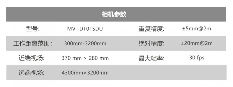 MV-DT01SDU 型號TOF 感知相機,是一款低成本、小體積、配置全面的立體相機,憑借硬件級的深度圖像處理方案,可高速同步輸出深度圖及彩色圖,適用于體積測量、識別、定位等行業應用。