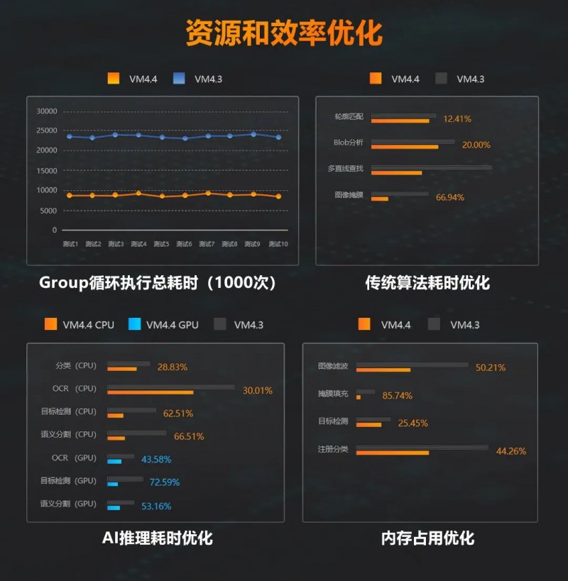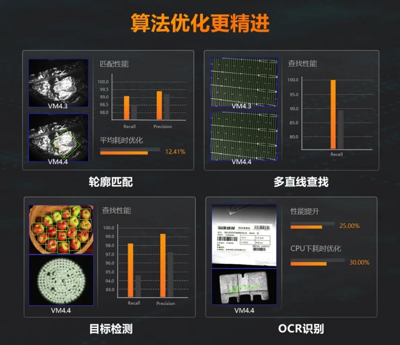 VM4.4對模板匹配、Blob、目標檢測、OCR、圖像處理、讀碼等多個算法工具進行了效率提升和性能優化,基于海量工業場景數據,推出了通用識別模型,無需二次訓練,能直接滿足大多數工業場景的檢測需求。