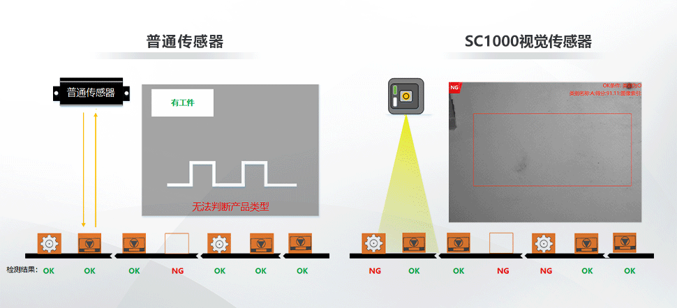 SC1000系列視覺傳感器相較傳統傳感器,還具備如下優勢: