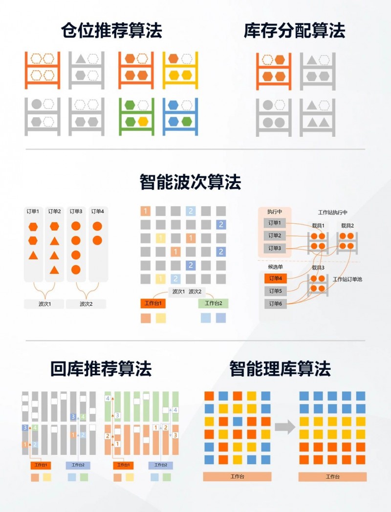 基于AI和深度學(xué)習(xí),iWMS-Logistics融合五大智能算法。入庫(kù)環(huán)節(jié)倉(cāng)位推薦算法,讓物料入庫(kù)合理分布;智能波次算法搭配庫(kù)存分配算法,考慮優(yōu)先級(jí)、庫(kù)存分布、關(guān)聯(lián)性等因素,實(shí)現(xiàn)庫(kù)存最優(yōu)分配和出庫(kù)站點(diǎn)均衡指派,助力日上免稅行實(shí)現(xiàn)日最大出庫(kù)15W行;智能理庫(kù)算法,在非作業(yè)時(shí)間段,由AMR智能理庫(kù),使每個(gè)器具調(diào)整到最佳倉(cāng)位,提高出庫(kù)效率。