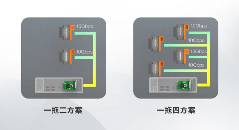 可以支持相機1-link和2-link傳輸工作模式,可以輕松搭配出1卡拖2相機或1卡拖4相機方案。并且卡端支持無序鏈接,安裝使用便捷。