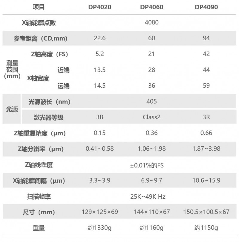DP4000系列3D激光輪廓傳感器,采用高速、高分辨率、大像元圖像芯片,硬件內置高精度3D 算法、單幀HDR技術以及多幀圖像融合算法,結合激光精準的時序控制,實時輸出高精度三維點云數據。該產品結構緊湊、集成度高、操作便捷,廣泛適用于3C、鋰電、汽車等行業動態場景下的高精度三維信息采集。