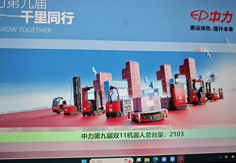 據悉,截至11月11日18時,中力移動機器人訂單銷量已突破2100臺。