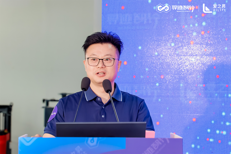 尋跡智行董事鐘立鐸圍繞智能制造行業(yè)趨勢與企業(yè)品牌理念展開深度分享。全新的品牌標識融合了現(xiàn)代科技元素與創(chuàng)新設(shè)計理念,象征著尋跡智行在智能搬運領(lǐng)域不斷探索的精神與無限可能。他強調(diào),尋跡智行的企業(yè)定位是 “全場景智能物流方案構(gòu)建者”,將通過“算法 + 硬件 + 數(shù)據(jù)” 的三位一體模式,為客戶提供從單機自動化到全廠物流互聯(lián)的全周期服務(wù),滿足客戶在不同場景下的智能物流需求。