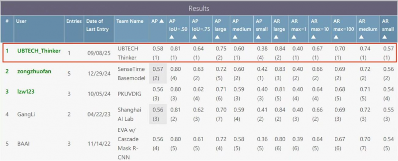 優必選Thinker在MS COCO detection challenge - Bounding Box排名中并列第一