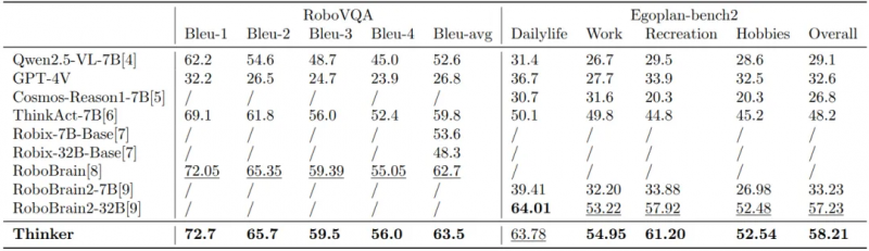優必選Thinker在RoboVQA與Egoplan-bench2中排名第一