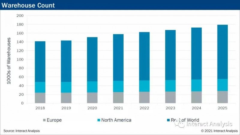 截至2020年底,15萬個倉儲遍布全球,占地約250億平方英尺。疫情以及發展中地區人們對于消費品的需求推動了人們選擇線上購物,因此未來五年需要增加28500個倉儲中心。這些新倉儲中有相當一部分是直面消費者的配送中心,這些配送中心需要投資大量勞動力和自動化設備。