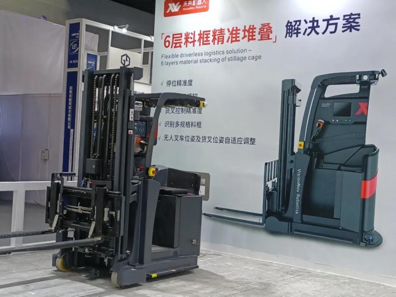 永恒力無人駕駛運輸系統(tǒng)堆垛車,提升高度3.2米,額定荷載1000KG。