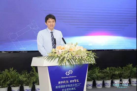 昆山市人大常委會(huì)主任張?jiān)铝帧⒗ド绞腥嗣裾笔虚L(zhǎng)張建成、哈爾濱工業(yè)大學(xué)副校長(zhǎng)張文叢、陸家鎮(zhèn)黨委書記方勇、陸家鎮(zhèn)黨委副書記/鎮(zhèn)長(zhǎng)錢璁和斯坦德機(jī)器人總經(jīng)理王永錕等眾多領(lǐng)導(dǎo)嘉賓為斯坦德數(shù)字物流示范工廠開業(yè)剪彩,市鎮(zhèn)領(lǐng)導(dǎo)與斯坦德機(jī)器人相關(guān)負(fù)責(zé)人共同為斯坦德機(jī)器人安全標(biāo)準(zhǔn)測(cè)試中心揭幕,并共同參觀了斯坦德數(shù)字物流示范工廠。