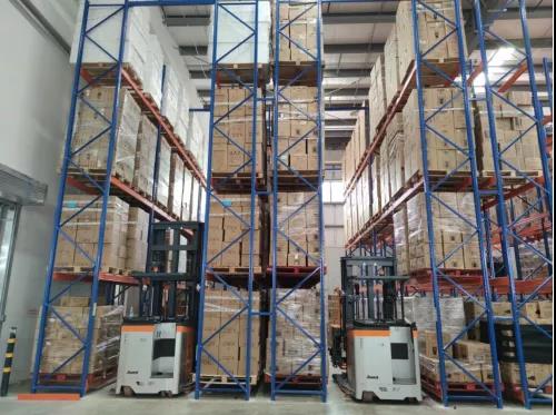 優異的性能使得VDA116三向叉車自推出以來就受到了眾多用戶的青睞。某食品配送公司,每天有大量的物料需要進出倉庫,之前都是采用地堆的方式存儲。隨著公司業務的不斷擴大,原本的存儲方式已經不能滿足他們現有的業務需求。只有將物料上貨架,在不改變現有倉儲面積的情況下,可以增加庫位??墒侨绻捎脗鹘y貨架堆垛方式,在庫位的增加上并沒有很大的優勢,未來業務再擴張后,還將面臨儲位不足的問題??蛻舳喾奖容^后決定采用卓一的三向堆垛車來改造現在的倉庫。