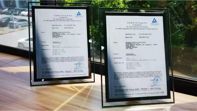 目前,快倉所有M系列潛伏式機(jī)器人皆符合最新CE認(rèn)證標(biāo)準(zhǔn),此次全指令CE證書中包括MD機(jī)械安全指令(2006/42/EC)和RED無線指令(2014/53/EU)。