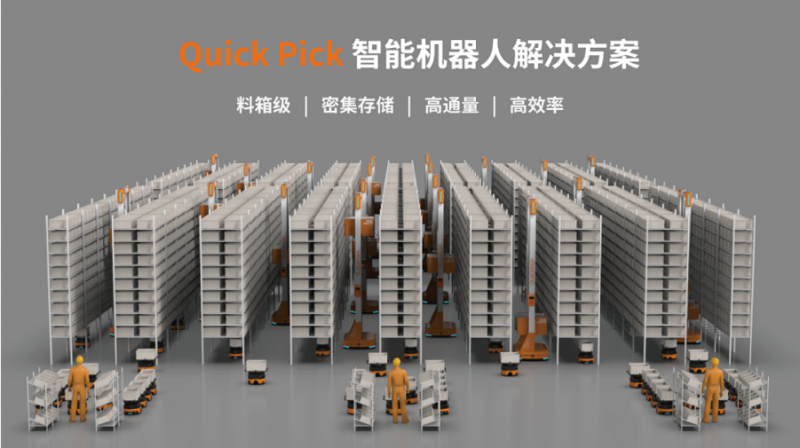 快倉2020年發(fā)布的全球首創(chuàng)Quick Pick智能機(jī)器人解決方案,實(shí)現(xiàn)了“密集存儲(chǔ)+貨到人揀選”的更優(yōu)使用組合,有效解決了“超高出入庫流量”要求下“拆零揀選及海量SKU退貨”人工作業(yè)效率低的痛點(diǎn),其特點(diǎn)是料箱級(jí)、密集存儲(chǔ)、高通量、高效率。