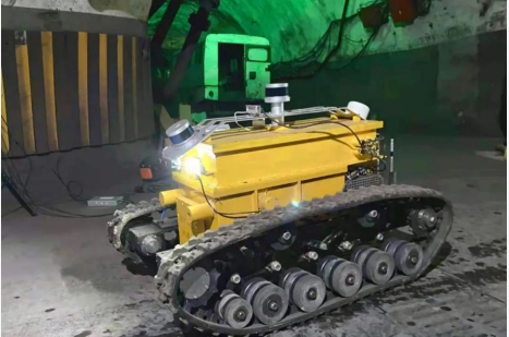 礦區(qū)目前主要應用的巡檢機器人可分兩類,一是軌道式巡檢機器人,二是履帶式移動巡檢機器人。由于礦區(qū)地形復雜,履帶底盤在通過性能上有更好的表現(xiàn),適合復雜不平整的地面環(huán)境。巡檢機器人攜帶環(huán)境探測模塊,可探測氣體、溫度、濕度、壓差等環(huán)境參數(shù)信息,同時還具備紅外圖像采集功能,圖像系統(tǒng)云臺可實現(xiàn)水平、垂直連續(xù)旋轉(zhuǎn),實現(xiàn)對井下危險區(qū)域環(huán)境全方位探測。