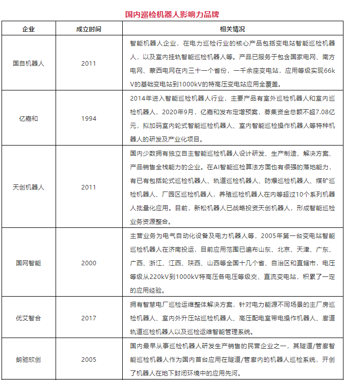 在中國,國家電網(wǎng)公司于 2002 年成立了電力機器人技術(shù)實驗室,主要開展電力機器人領(lǐng)域的技術(shù)研究。2004 年,研制成功第一臺功能樣機,后續(xù)在國家“863項目”支持和國家電網(wǎng)公司多方項目支持下,研制出了系列化變電站巡檢。2013年,變電站巡檢機器人首次進入國網(wǎng)招標目錄,此后,巡檢機器人市場開始進入全面推廣階段。