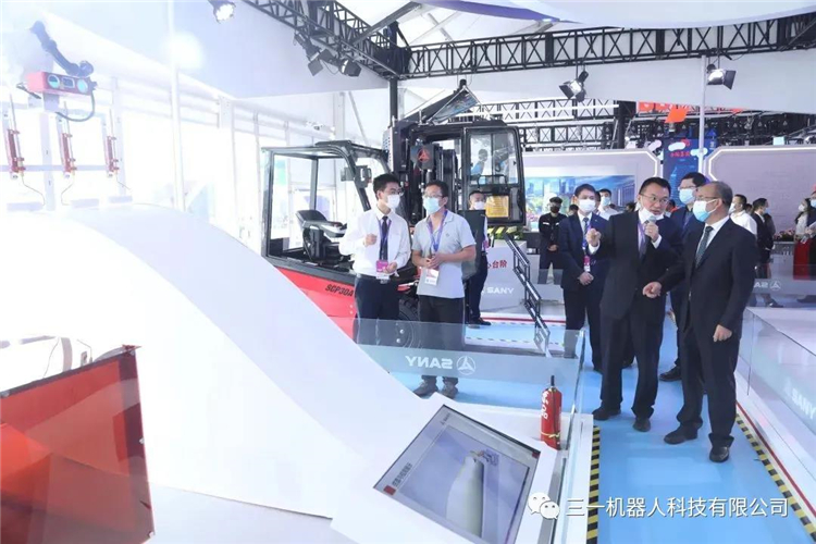 開幕式期間,山西省副省長于英杰、西藏自治區(qū)副主席孟曉林等來到三一展區(qū),仔細聽取三一機器人科技有限公司總經(jīng)理郭承志介紹相關(guān)情況,并不時詢問項目的技術(shù)特點及市場推廣進展。