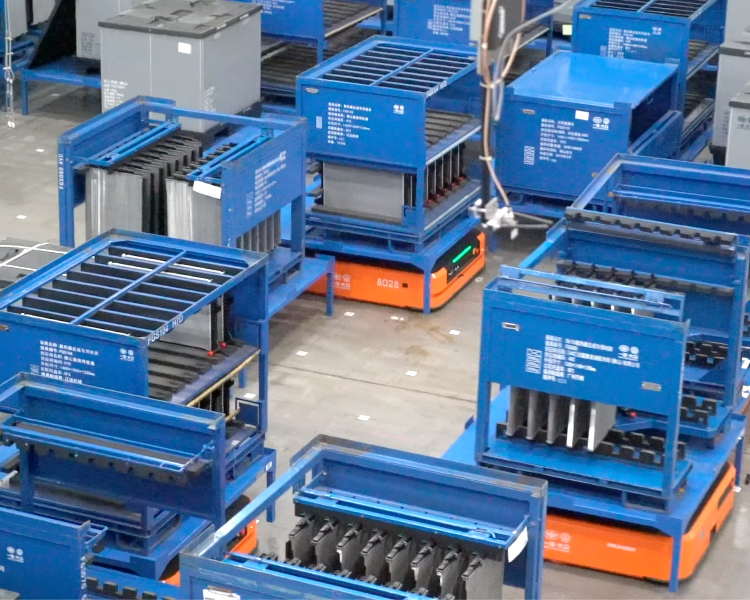 AMR支持超長、異型載具;支持雙機器人協(xié)同作業(yè);系統(tǒng)支持二級緩存作業(yè),單機器人遞進交換,保證產(chǎn)線不間斷作業(yè)。