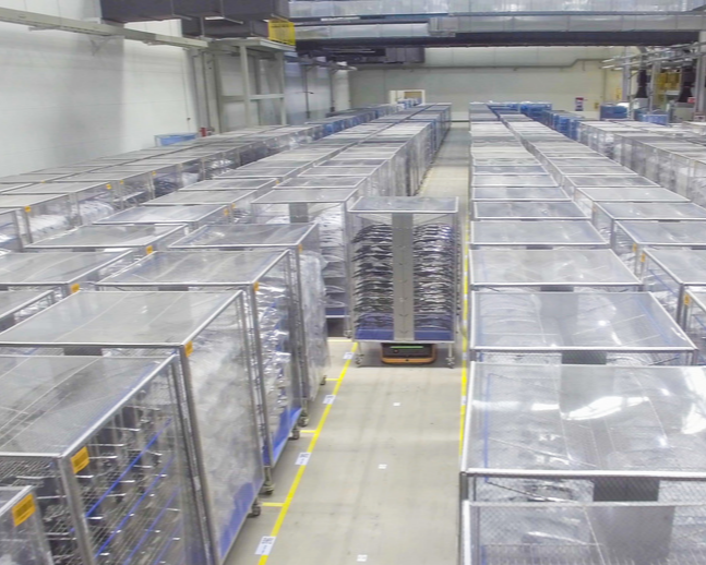 機器視覺產(chǎn)品組成的讀碼門對每個紙箱或料盤上的碼進行識別,高效完成入庫或出庫作業(yè)。